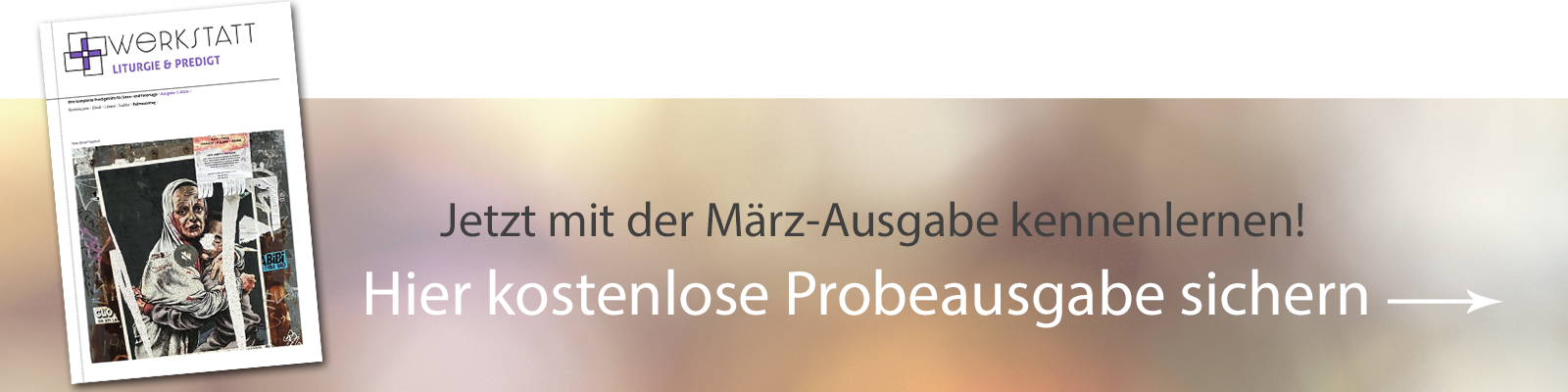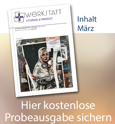 Bei den täglichen Herausforderungen ist die Zeit manchmal knapp oder Sie können einen inhaltlichen Impuls gebrauchen? Egal, was. Mit der WERKSTATT Liturgie & Predigt erhalten Sie für jeden Sonn- und Feiertag einen Predigtvorschlag und ein Bildbetrachtung – komplett ausgearbeitet und sofort einsetzbar. Sie entscheiden selbst, was Sie brauchen. Alle Inhalte erhalten Sie – neben dem gedruckten Heft – auch digital. Somit können Sie die Texte nach herzenlust (ver-)ändern und so nutzen, wie es Ihre individuelle Situation gerade erfordert.